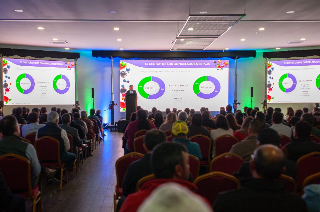 Cerca de 400 personas se congregaron en el Club de la Unión de Linares para seguir los pormenores de la Conferencia Berries 2025, evento organizado por Chilealimentos y que contó con el apoyo de ProChile y el auspicio de Oxbo, QualityLab, Novaberries y Frozen Food Foundation de la American Frozen Food Institute.